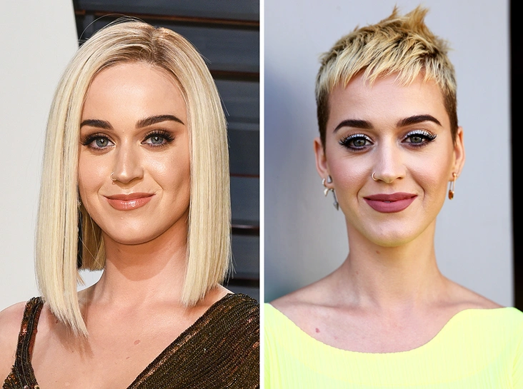 Затейнице Кэти Перри идет короткая стрижка, но мы бы советовали снизить степень интенсивности косметики и акцентов в макияже. Подкрасить отросшие корни также не помешало бы: пока что подобное простительно лишь для селебрити.