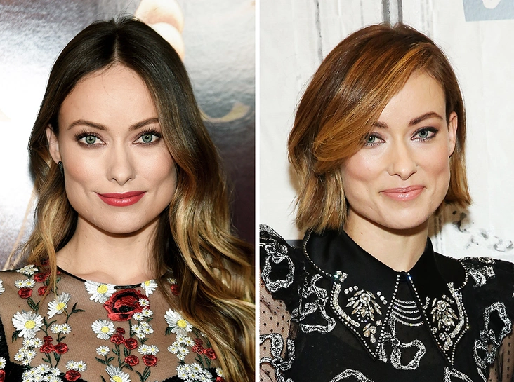 Оливия Уайлд любит информировать поклонников о смене имиджа с помощью Instagram: (запрещенная в России экстремистская организация) именно там первым появилось селфи с белоснежным каре, потом ─ результаты опыта по перекрашивания в брюнетку. Сейчас Оливия далека от крайностей и предпочитает естественные преображения: например, мягкий многогранный шатуш. С короткой длиной Оливия также не экспериментирует, а в последнее время отдает предпочтение каре по плечи, и не зря ─ такая прическа очень молодит маму двух малышей.