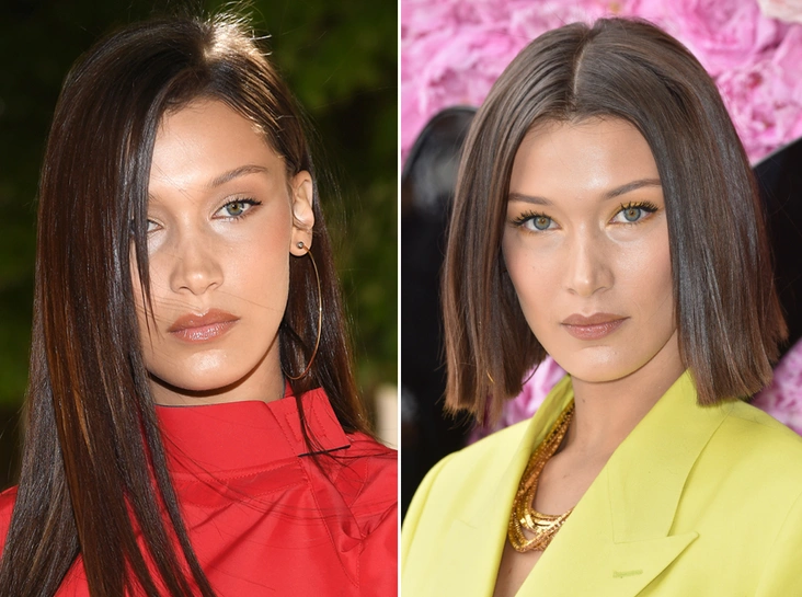 На парижской Menswear Fashion Week SS19 новую прическу также показала Белла Хадид. Новую, конечно, условно: модель не раз выгуливала удлиненный боб до этого, а вот классическое каре с пробором посередине и четким краем стало довольно оригинальным выбором. «Вот всех ты, душенька, нарядах хороша», ─ пожалуй, это выражение в точности про Беллу. Поэтому судить, лучше ли ей с длинными локонами или с короткими волосами, не беремся.