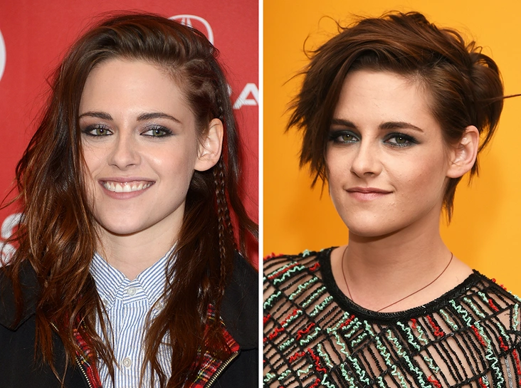 Один раз расставшись с локонами, Кристен, кажется, так и не смогла заставить себя вновь отрастить волосы: боб сменялся каре, каре ─ «гаврошем», «гаврош» ─ ежиком (умолчим о гламурной желтизне и отросших концах волос — они в определенном прочтении до сих пор в моде). Из коротких вариантов Стюарт нам больше всего нравится немного вольнодумный, но подкупающий этим вариант «каре на ножке».