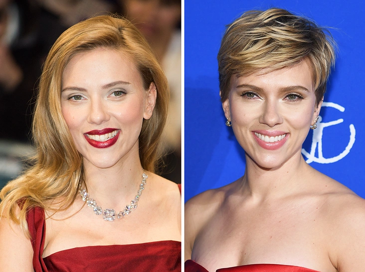 Только Скарлетт может сделать суперсексуальной стрижку пикси да еще с выбритыми висками! Коротким волосам актриса, однажды навестив парикмахера, не изменяла довольно долго (но немного отходя при этом от максимализма).