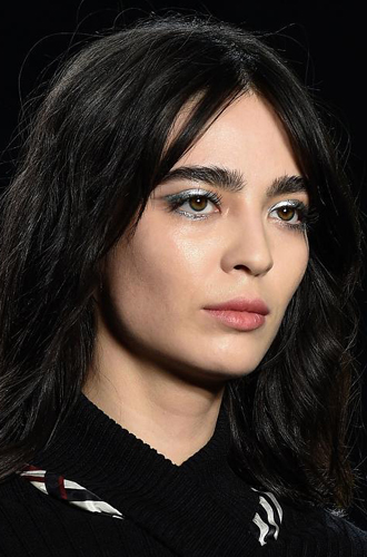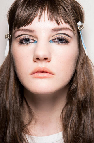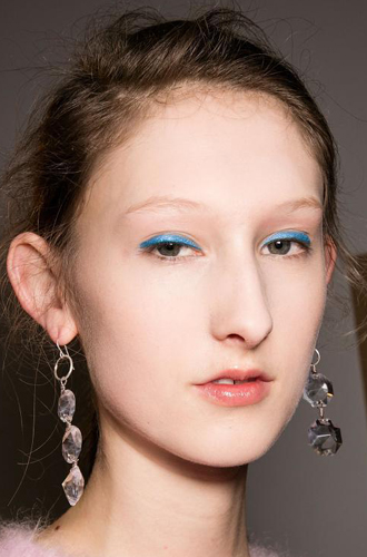 Но особенно небывалую популярностью в нынешнем сезоне заполучила, на удивление, голубая подводка. При этом неординарный вариант довольно хлопотен: подойдет далеко не для каждого образа в одежде, и цельный look с такой подводкой придется продумывать заранее и до мелочей, чтобы, например, не обжечься на пальто в стиле 20-ых годов и голубом неоне на глазах из 70-ых.