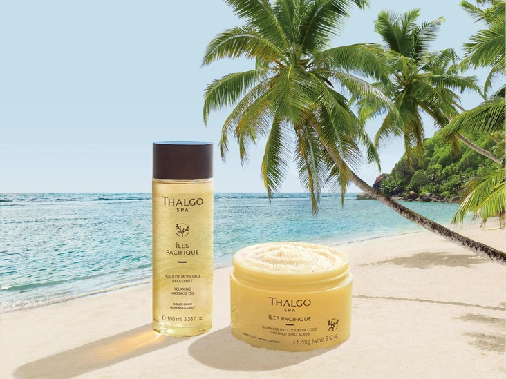 Спа-гамма для тела «Экзотические острова», Iles Pacifique, благоухающая ароматами ванили и цветов Монои, вышла у Thalgo. Основой формул здесь стал экстракт из тихоокеанских водорослей Каулерпа, который благодаря большому количеству микроэлементов и аминокислот эффективно работает с кожей, возвращая ей гладкость и упругость. Также в состав вошло традиционное таитянское масло Монои, изготовленное из цветов тиаре, которые после сбора на 12 дней замачивают в кокосовом масле. Благодаря этому получается живительный микс, великолепно восстанавливающий и защищающий волосы с кожей. Входит в средства и чистое кокосовое масло, богатое витаминами А, Е и жирными кислотами. В линию вошли: скраб с частицами кокоса, масла для душа и для массажа, шипучие релакс-таблетки с магнием для ванны, а также крем для тела.
