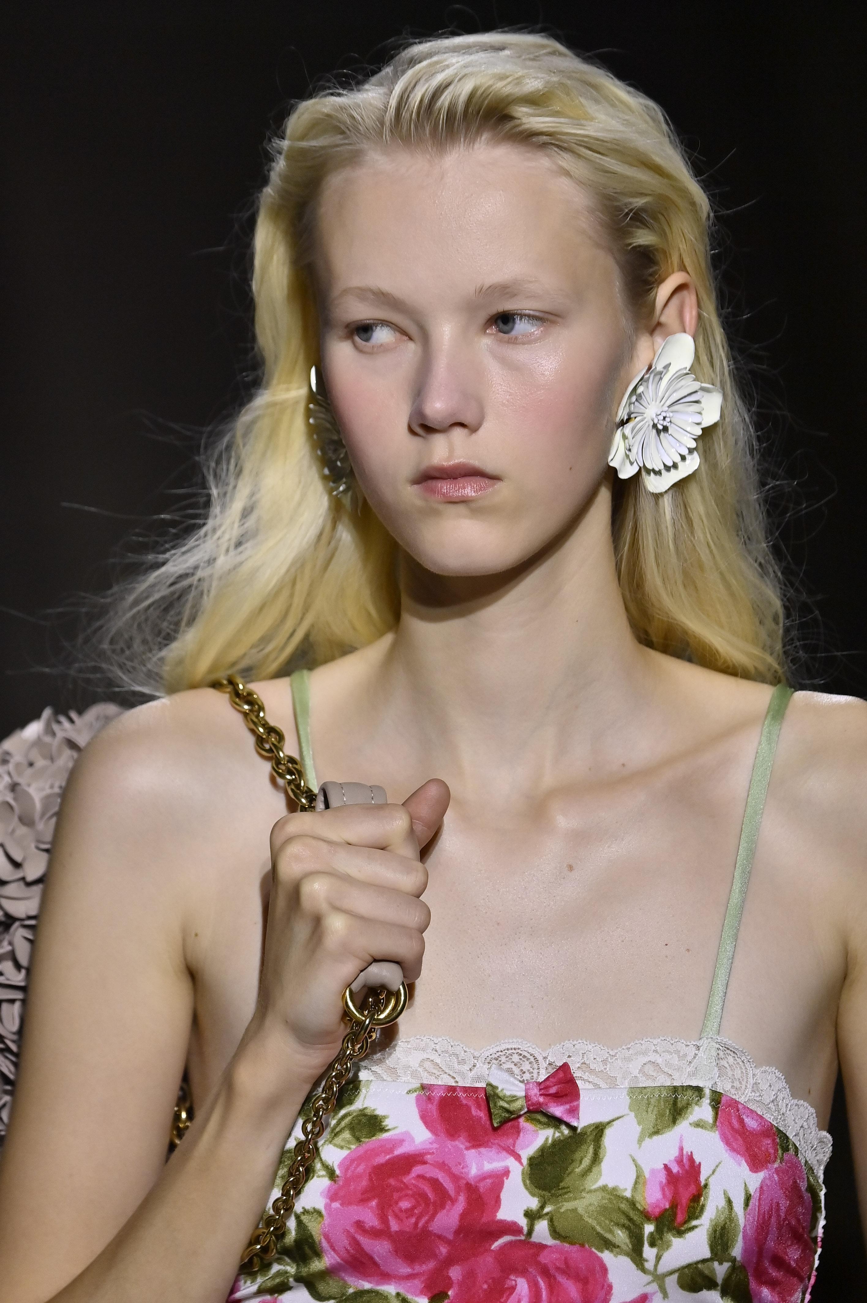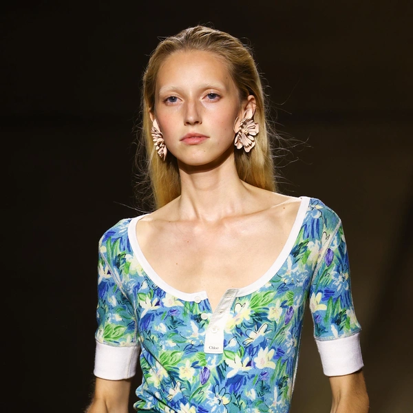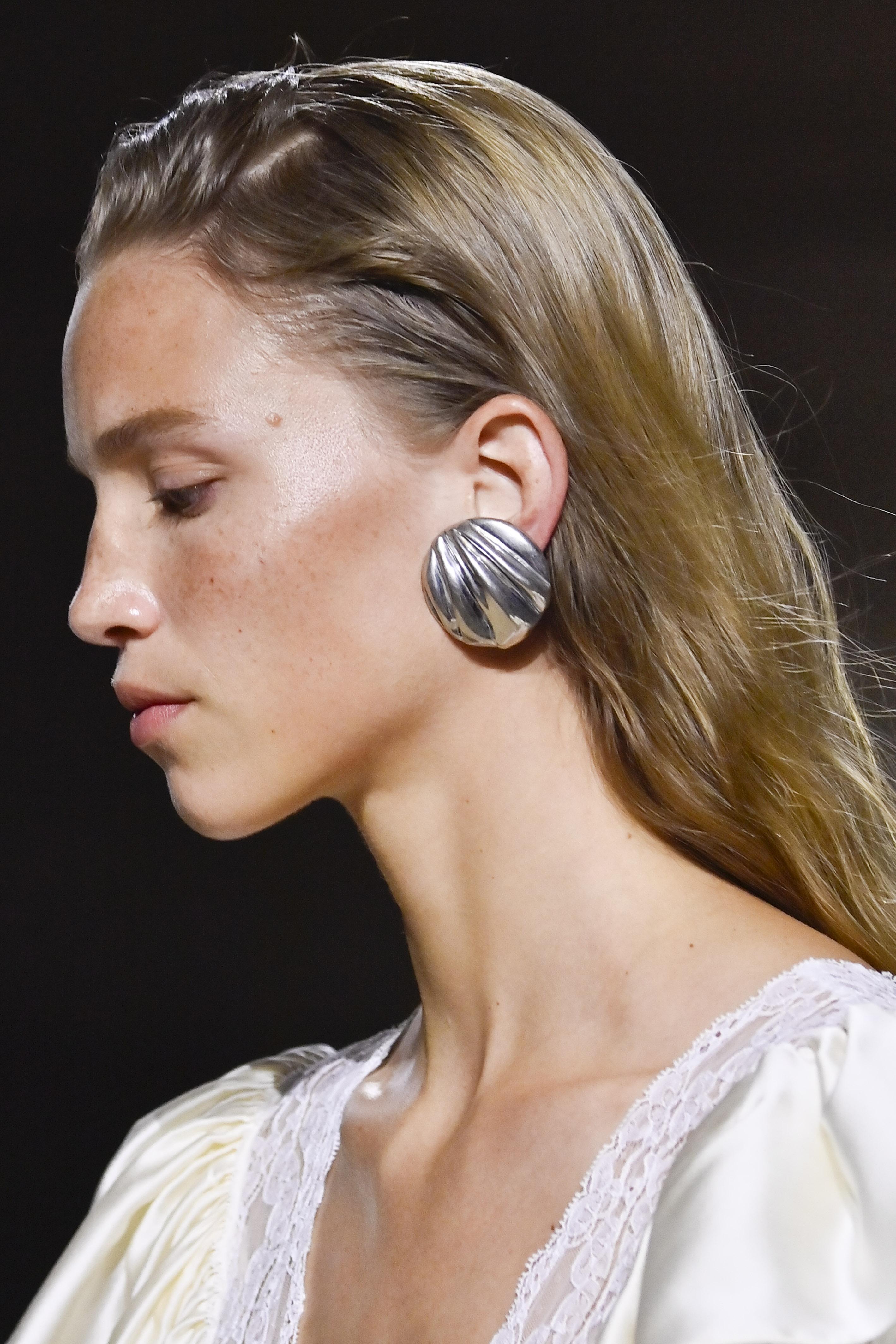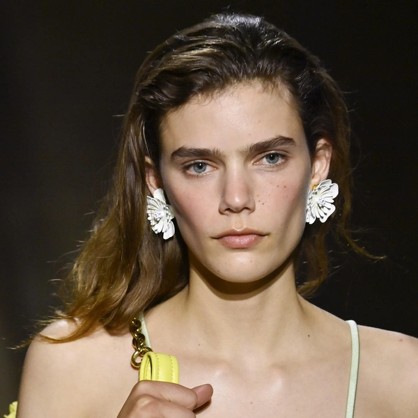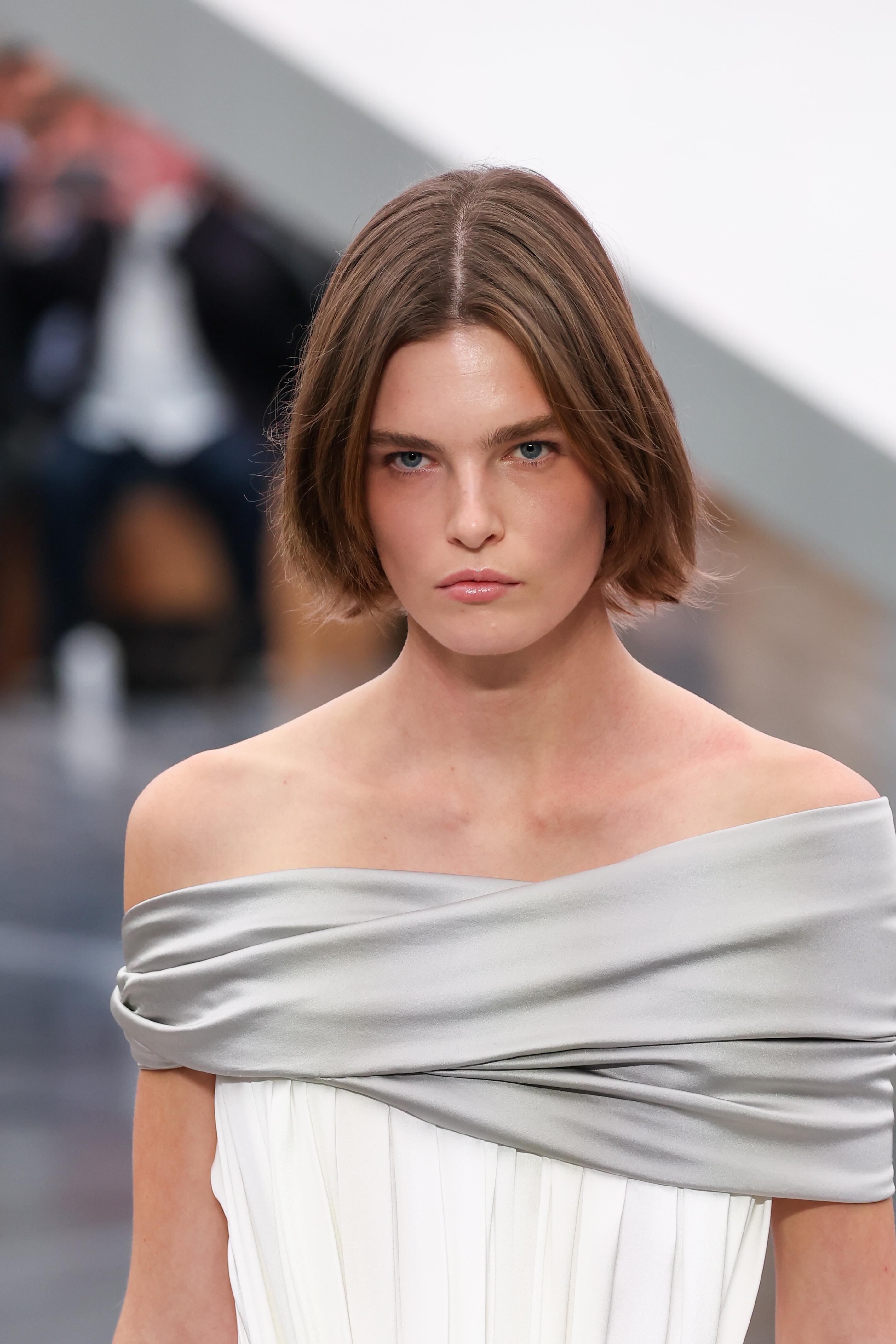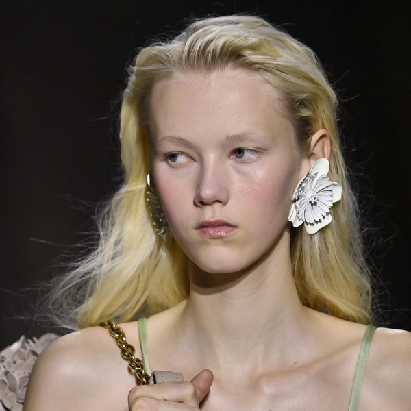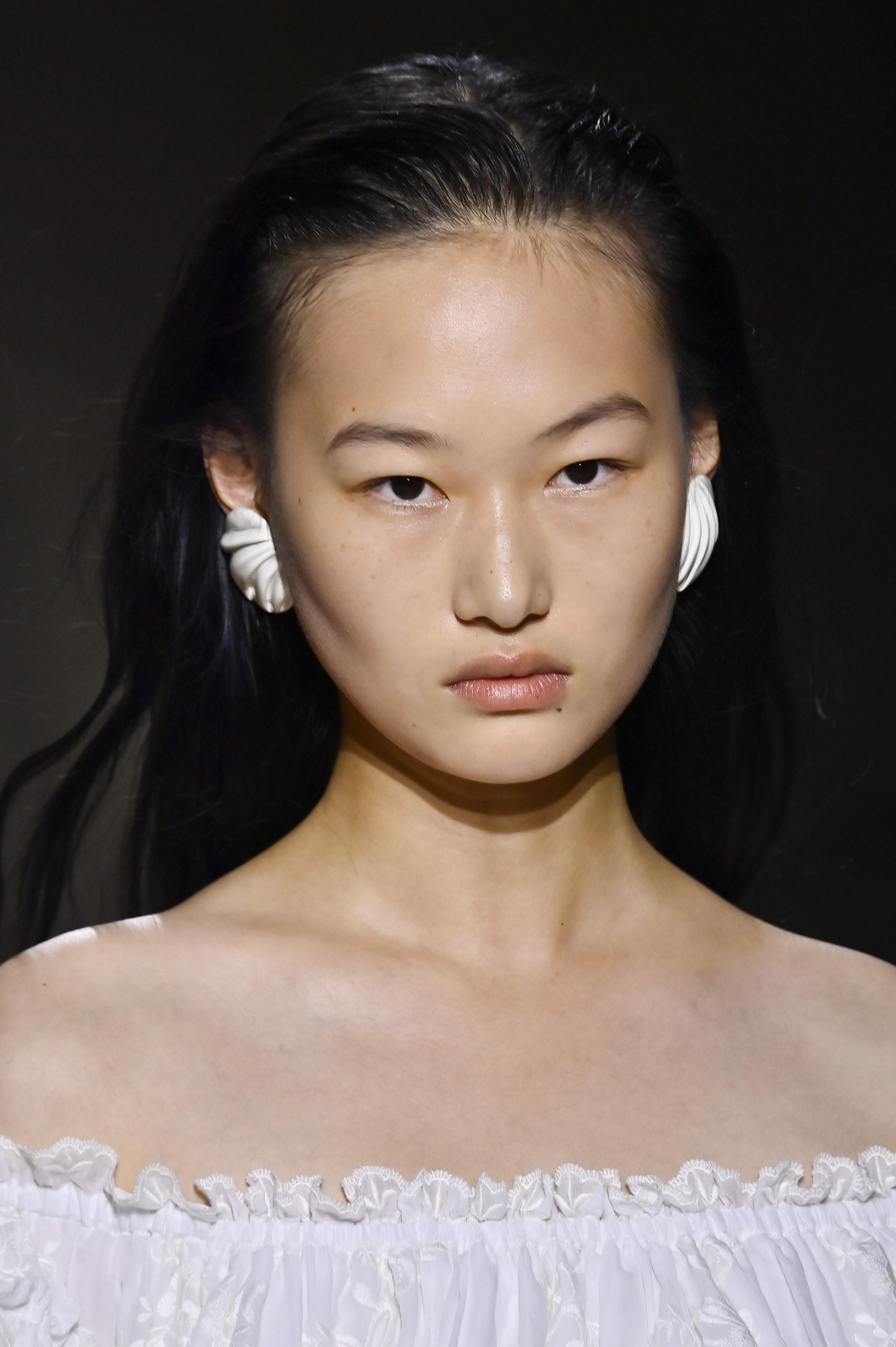 В бэкстейдже Chloé визажисты предварительно готовили кожу LED-терапией и легкими средствами ухода, чтобы добиться гладкости без слоя тонального крема. Вместо хайлайтера использовались кремовые текстуры, в которых блеск появляется не за счет пигмента, а за счет отражения света от поверхности кожи. На подиуме такие лица выглядели не накрашенными, а ухоженными, в этом и заключался замысел.