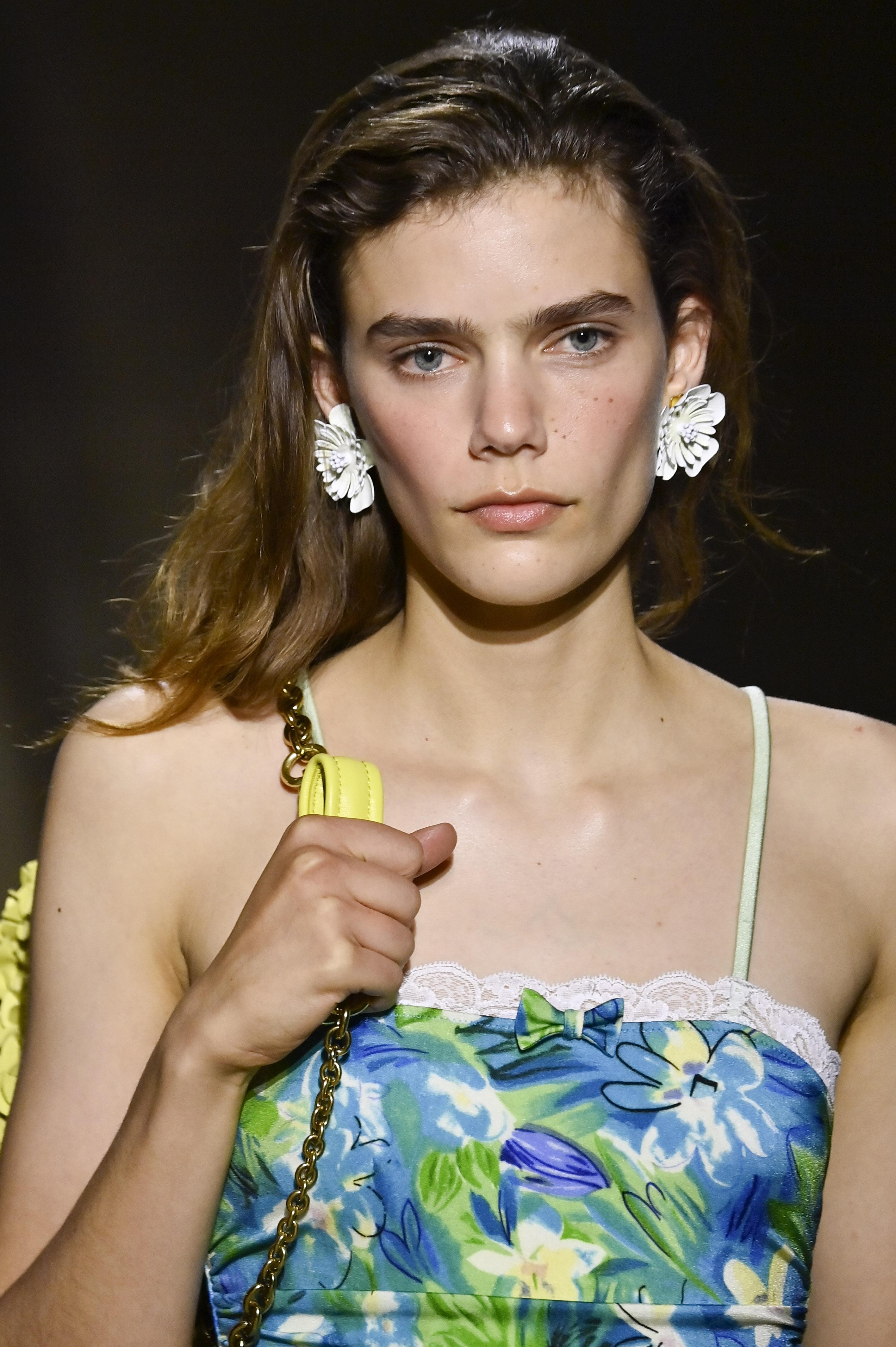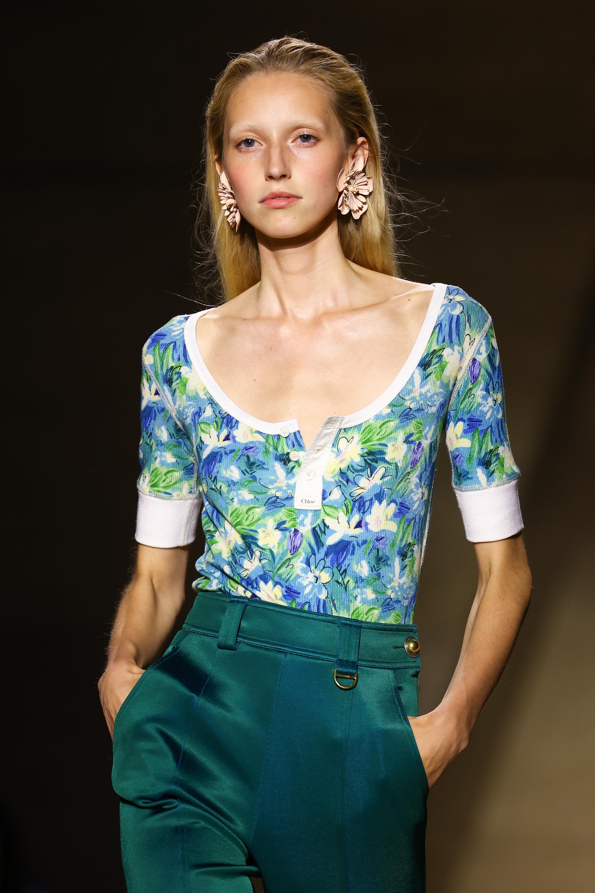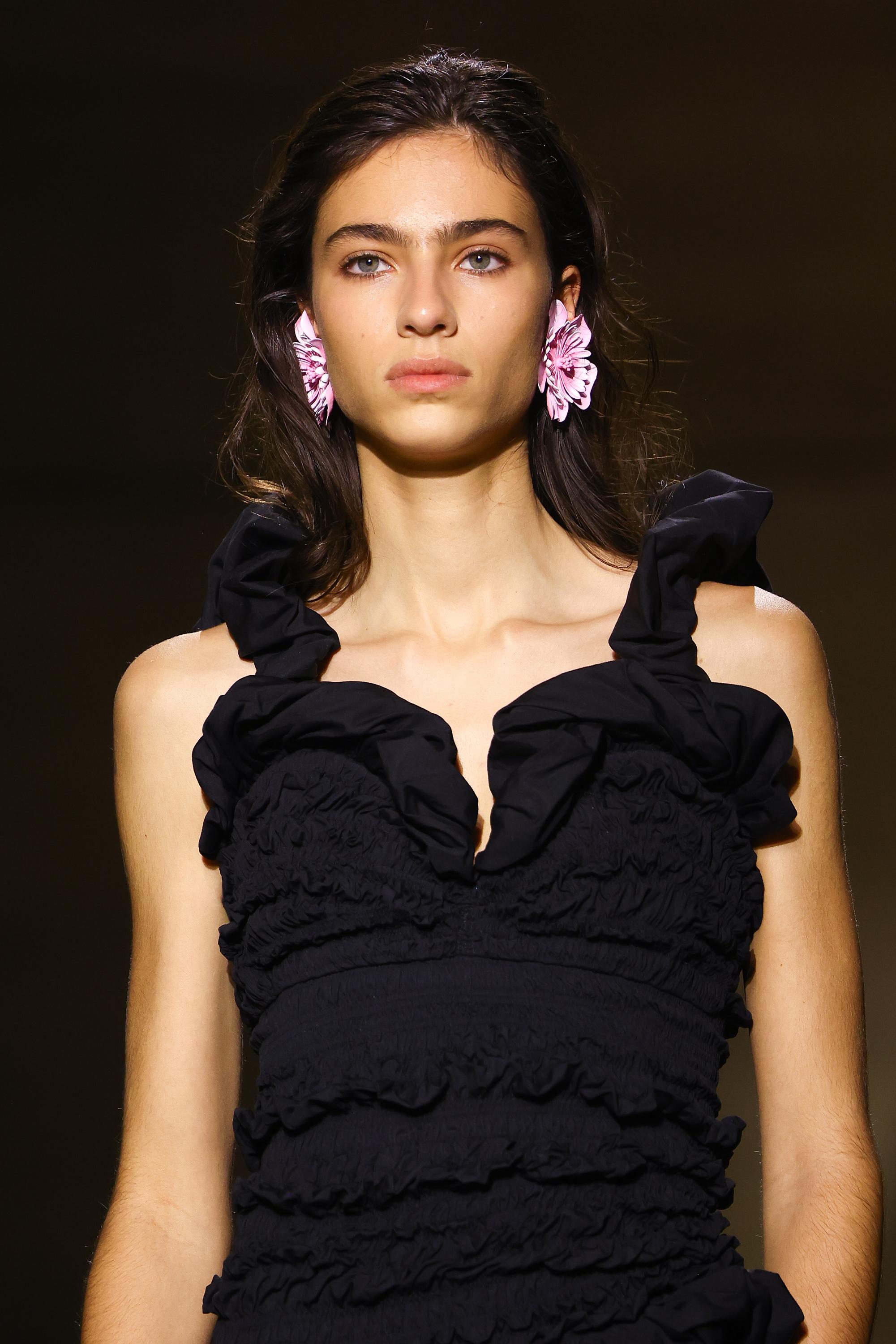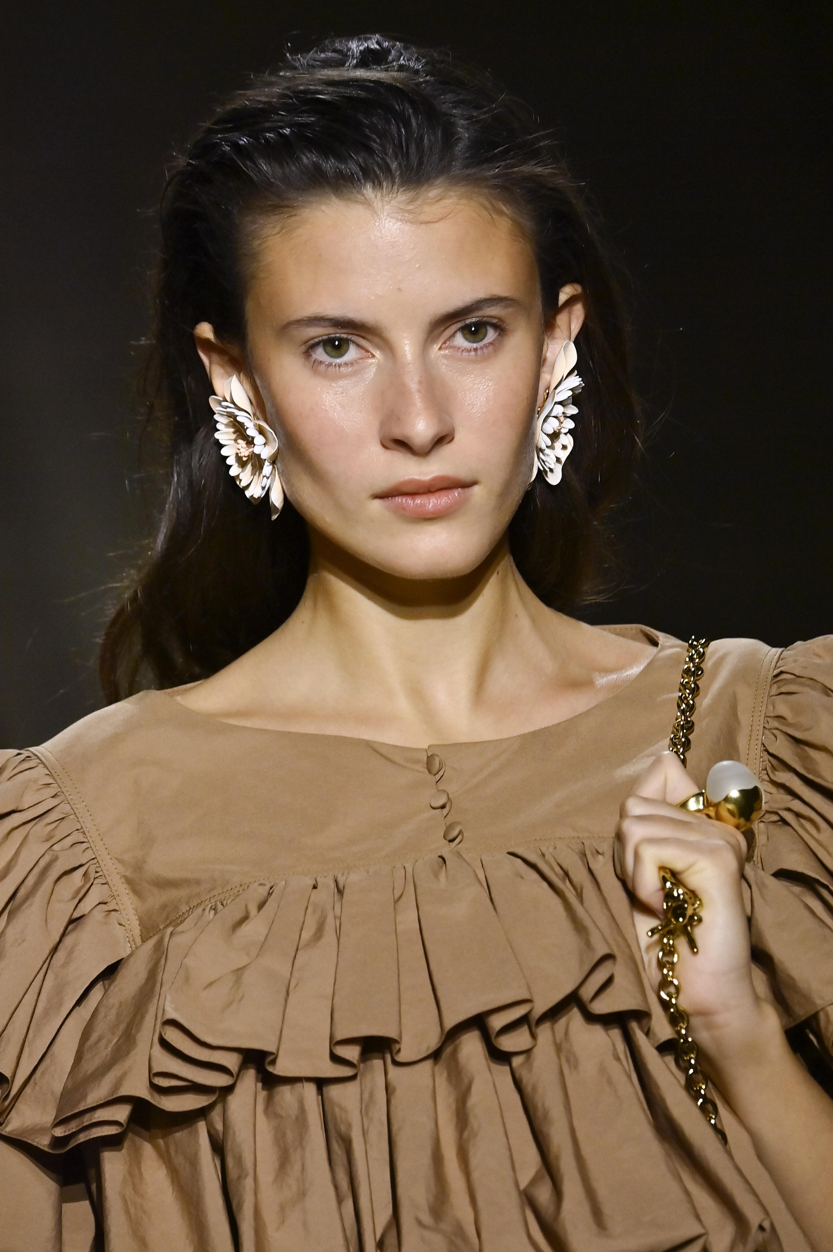 В бэкстейдже Chloé визажисты предварительно готовили кожу LED-терапией и легкими средствами ухода, чтобы добиться гладкости без слоя тонального крема. Вместо хайлайтера использовались кремовые текстуры, в которых блеск появляется не за счет пигмента, а за счет отражения света от поверхности кожи. На подиуме такие лица выглядели не накрашенными, а ухоженными, в этом и заключался замысел.