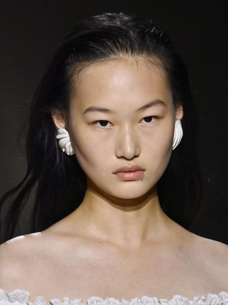 Похожие макияжи видны у Balmain — «бархатная кожа» с мягким, неравномерным свечением и легким оттенком тепла в центре лица. Здесь макияж не выстраивает архитектуру, а создает ощущение объема, как если бы свет падал через ткань. Визуальный эффект — сдержанная чувственность, лишенная графики и контрастов.