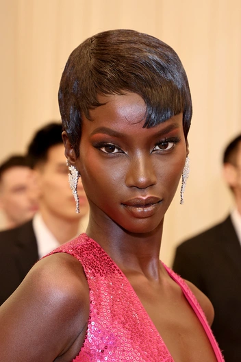 Несмотря на красивый макияж, образ модели скорее неудачный. Всему виной стрижка и укладка. Кажется, что модели неудачно отстригли челку, а затем еще и нелепо уложили. Думаем, что ретро-волна в стиле 20-х годов прошлого века подошла бы Анок лучше.