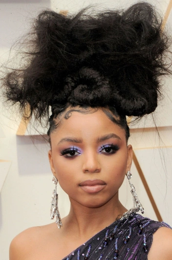 С такой прической Хлоя точно осталась незамеченной. Волосы отвлекают внимание и от наряда, и от очень красивого макияжа в лавандовом оттенке. Не знаем, чего добивалась актриса, но нам кажется, что более простая прическа выглядела бы лучше, например, высокий пучок (читайте также: 4 устаревших бьюти-приема в макияже (и чем их можно заменить)).