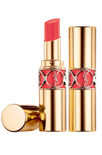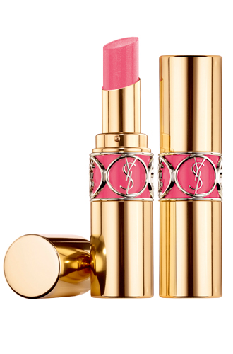 Обладательницам глаз зеленых оттенков – от травяных до изумрудных – можно сделать акцент на губы. Нанесите оттенок фуксии (64 Electric Fuchsia) «новогодней» помады для губ Rouge Volupte Shine ─ взрывной розовый, наполненный изысканным мерцанием.