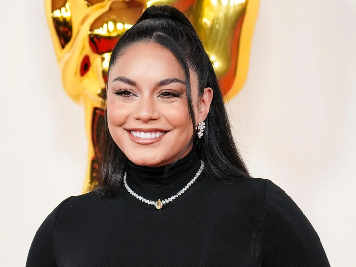 На красной дорожке Ванесса Хадженс появилась с «мальвинкой» и выпущенной у лба прядью — беспроигрышный вариант прически, которая подойдет практически к любому образу. Макияж был сделан в коричневых тонах в сочетании с длинной тонкой стрелкой.