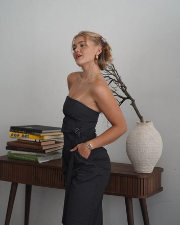 Заколки не только фиксируют пряди, предотвращая их распадение на ветру, но и добавляют стильный акцент, придавая образу завершенность. Аксессуары с блестящими элементами добавляют нотку гламура, делая прическу более выразительной и интересной, даже при ее минималистичности. Эта укладка идеально подходит для повседневного стиля, но благодаря заколкам легко адаптируется и для более нарядных случаев.