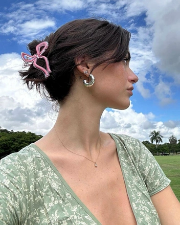 Как создать: скрутите волосы в жгут, направьте его вверх и закрепите крабиком. Если хочется что-то более оригинальное, то попробуйте сначала собрать крабиком сзади две крупные пряди, а затем продеть их через аксессуар таким образом, чтобы получилась пышная ракушка.
