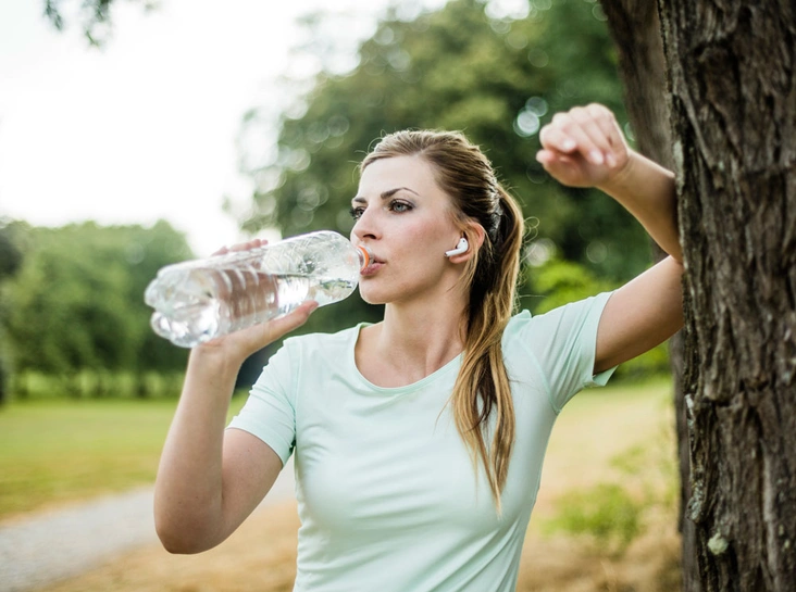 Уверены, вы уже даже не приступаете к занятиям без бутылочки воды, но мы все же возьмем на себя смелось еще раз напомнить и объяснить важность регулярного потребления воды во время тренировок. Интенсивные физические занятия провоцируют повышенное потоотделение, которое в разы усиливается из-за высоких температур. Особенно актуальна эта проблема становится летом, когда солнце начинает работать активно и на улице становится как в парной. Занятия на открытом воздухе в такую погоду нужно проводить с большой осторожностью, в частности из-за уже упомянутого активного потоотделения, с которым из организма выходят не только токсины, но и необходимые нам вода, минеральные вещества и микроэлементы. Что восстановить уровень первого не забывайте выпивать пару стаканов воды до тренировки, постоянно пить небольшими глотками воду во время занятий и выпивать стакан воды через несколько минут после завершения занятий. Восстановить уровень питательных веществ и электролитов помогут специальные спортивные напитки или шоколадное молоко по завершению тренировки.