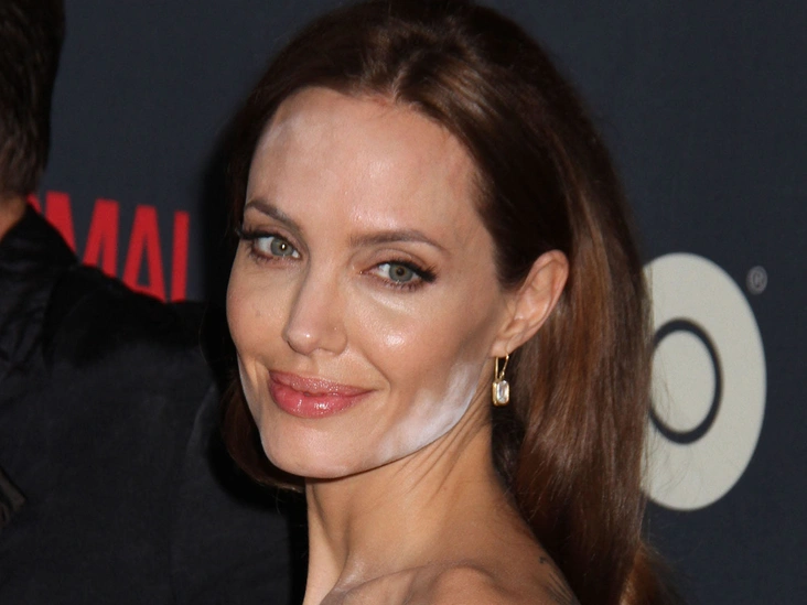 Пожалуй, самую красивую женщину в мире сложно испортить, но визажист Джоли с этим справился. Что же произошло? Судя по всему, мейкап-мастер нанес слишком много транспарентной пудры для фиксации тона. Из-за этого часто создается эффект «лица в муке». С этим продуктом стоит работать очень аккуратно, нанося его лишь на Т-зону.