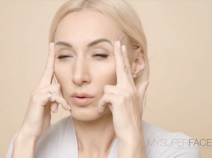 Указательные и средние пальцы кладем на височную часть, фиксируем ткани кожи для предотвращения морщин и начинаем прищуривать глаза – взгляд перед собой или немного направлен вверх. Не подключаем лоб и нижнюю челюсть. Когда вы сделаете 30 раз, в конце задержитесь в статике еще на 10 секунд.