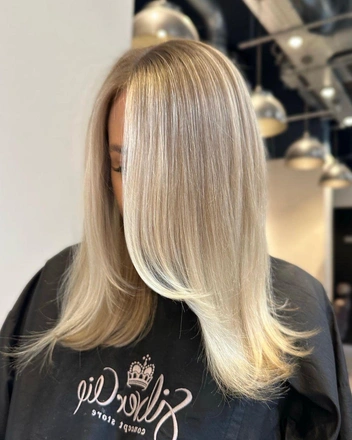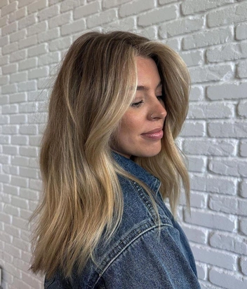 В этом окрашивании ореховые оттенки смешиваются с ванильными — получается плавный переход от более темных корней к светлым кончикам. Такой блонд прост в уходе, так как незаметно отрастает и не требует ежемесячной коррекции. Однако во время осветления волосы все равно подвергаются повреждению, поэтому в домашнем уходе лучше не забывать про восстанавливающие и питательные средства.