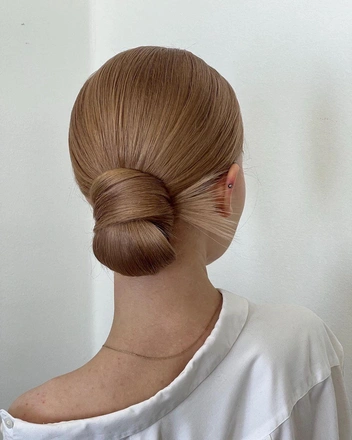 Элегантная и женственная укладка подойдет и для вечернего мероприятия, и для работы или бранча с друзьями. Чтобы уложить волосы в гладкий пучок, нанесите на волосы немного геля и соберите их в узел, используя шпильки или резинки. Более аккуратной прическа получится, если вы будете использовать широкий шпатель или ребро ладони — так у вас получится более равномерно распределить волосы по кругу пучка. Выбивающиеся волоски можно пригладить с помощью геля для волос и маленькой щеточки или специального воска в стике (читайте также: 4 стильные прически для длинных волос, которые всегда будут в моде).