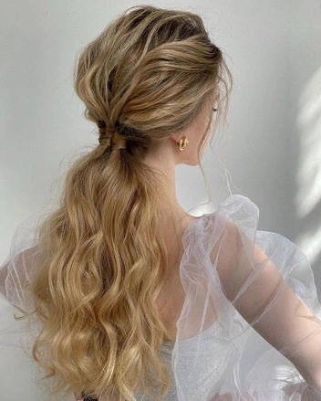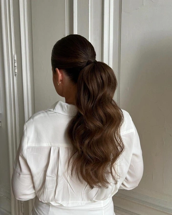 Небрежная прическа подойдет для жарких дней. Перед тем, как собрать волосы, накрутите их на плойку среднего диаметра. После этого сбрызните локоны текстурирующим спреем и соберите их в хвост, вытягивая волосы с макушки для небрежности. Зафиксируйте прическу тонкой резинкой и оберните вокруг нее небольшую прядь, чтобы скрыть аксессуар (читайте также: Кудри-пружинки и начесы: 5 причесок, которые не идут никому (и даже звездам)).