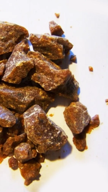 Смола из повреждений коры одного из видов красного дерева Myroxylon toluiferum, которое встречается в колумбийской провинции Толу. Для добычи затвердевающей смолы коричневого цвета делаются V-образные надрезы в течение всего года, за исключением сезона дождей.