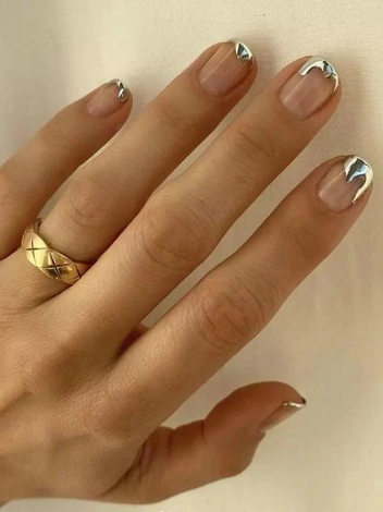 Одним из самых актуальных трендов в маникюре зимнего сезона 2024/2025 является серебряный френч. Этот стильный и элегантный вариант с металлическим блеском подойдет для любой формы и длины ногтей.