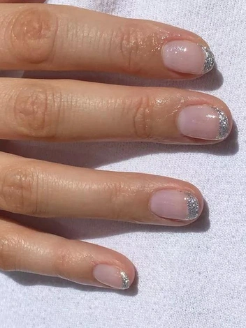 Глиттер и стразы. Если хотите добавить маникюру еще больше новогоднего сияния, можно использовать блестки или стразы на серебряных кончиках.