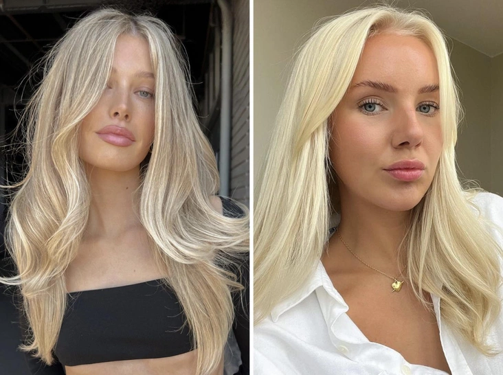 «Краевая линия — это самые тонкие волоски, и они чаще всего обламываются, — объясняет Ксения Калинина, — У обладательниц светлых волос от природы волос толстый, упругий и эластичный. И им как раз подойдет техника „скандинавского окрашивания“. Из-за хорошего качества волос краевую линию можно спокойно осветлять, и она не сильно пострадает. Однако резкого перехода добиться не получится, так как свои волосы тоже достаточно светлые».