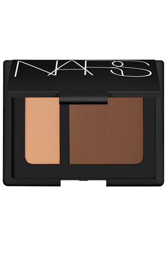 Итак, непосредственно контуринг. Для него можно использовать матовый бронзант или скульптор (очень хороший вариант ─ от Nars). Кладем тень под скулу и вытягиваем ее на височную часть, а также на треугольник лба от виска ─ благодаря этому добиваемся скульптурности и выразительности лица. В качестве завершающего штриха последующим слоем наносим немного хайлайтера или шиммера для естественного сияния и свежести кожи.