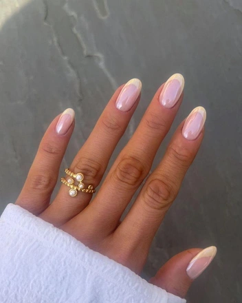 Сливочный френч можно сделать еще необычнее, если сделать его двойным или добавить лунки. Такой маникюр подойдет как длинным, так и коротким ногтям любой формы. А сочетать двойной френч можно и с другим и дизайнами, например, объемными элементами или минималистичными рисунками. А для того, чтобы ногти выглядели еще более изящно, добавьте к френчу жемчужную втирку.