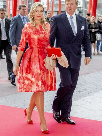 Во время трехдневного визита в Дублин летом 2019 года королева Нидерландов в очередной раз подтвердила свое умение подчеркнуть свои лучшие черты при помощи яркой палитры. Максима предстала перед ирландцами в приталенном платье с цветочным принтом и остроносых туфлях с прозрачными вставками. Алый комплект дополнил клатч того же оттенка, коралловые серьги и красная помада, наилучшим образом подчеркивающая цвет глаз и волос Ее Величества.