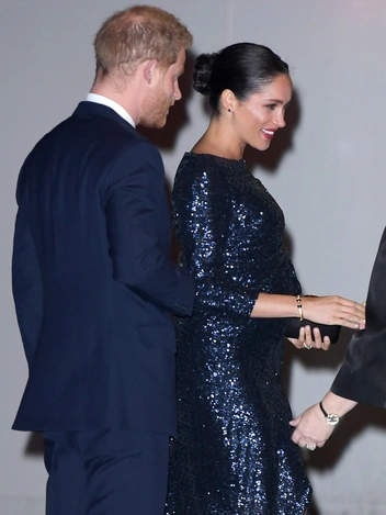 Как правило, герцогиня Сассекская отдает предпочтение натуральным коричневатым оттенкам, изредка давая шанс сдержанному кораллу, однако во время беременности супруга принца Уильяма появилась на премьере шоу Cirque du Soleil в темно-синем платье с пайетками, дополненном лаконичным пучком, коричневыми тенями и красной помадой. В итоге бьюти-образ герцогини получился весьма сдержанным.