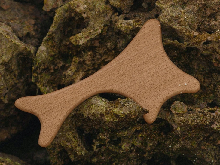 Альтернатива весьма жесткому сухому массажу щеткой — массаж тела с помощью гуаша. В российском варианте у бренда Leav гуаша выполнен из древесины бука. Подходящими для разных частей тела выемками плавно и без нажима проводите по телу снизу вверх — это поможет наладить лимфодренаж, расслабит уставшие после тренировки мышцы.