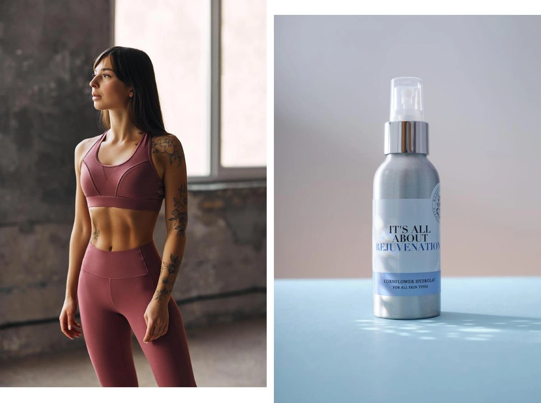 Пьете воду во время тренировки? Кожа тоже страдает от обезвоживания. Возьмите с собой в фитнес-зал не только многоразовую бутылку с водой, но и гидролат, то есть цветочную воду (очень комфортный — спрей «Василек» у Botanic Garden). Распыляйте на лицо по мере надобности.