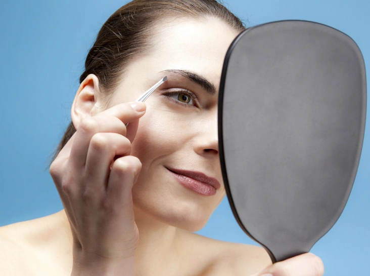 Увеличивающее зеркало не дает полную картину. В нем вы видите только отдельные участки бровей, которые так и хочется начисто удалить пинцетом. Лучше занимайтесь выщипыванием перед обычным большим зеркалом, в котором полностью видно ваше лицо. И не нагибайтесь к нему слишком близко, иначе получится тот же самый мешающий эффект увеличения (читайте также: «Как не надо: 7 серьезных ошибок на пути к идеальным бровям»).