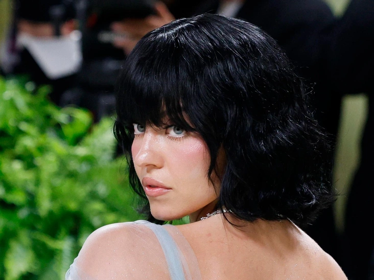 Макияж в голубых оттенках был также замечен на Сабрине Карпентер. Визажист Каролина Гонсалес нанесла акцентные тени в складку века и подчеркнула их тонкой стрелкой. В остальном макияж остался нейтральным — свежий румянец в сочетании с нюдовым блеском для губ.
