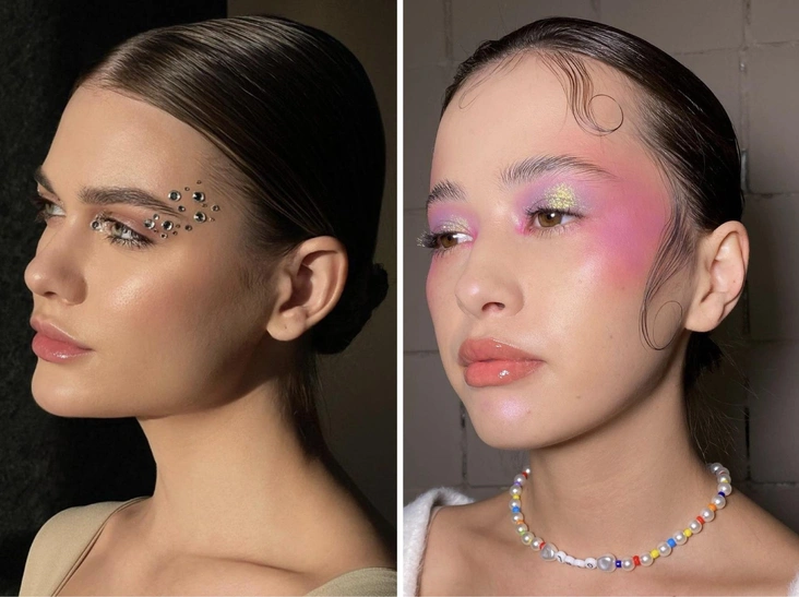 Сделать креативный макияж самостоятельно легче, чем может показаться. Необязательно рисовать сложные узоры на веках или делать разноцветные переходы, необычным макияж сделают небольшие украшения на веках, нетипичные стрелки или новое прочтение интенсивного румянца. Рассказываем, как с помощью базовой косметики сделать креативный макияж.