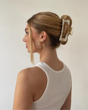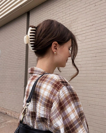 Обычно подобные прически делают с помощью шпилек и невидимок. Крабик же поможет сэкономить время и спасет руки от затекания. Можно сделать классическую тугую и аккуратную «ракушку», которая подойдет к любому наряду, например, к легкому платью или летнему костюму. А можно сделать расслабленный вариант этой прически, позволив волосам лечь небрежно, — идеальный вариант, чтобы отправиться на вечернюю прогулку у моря, накинув на себя льняную рубашку.