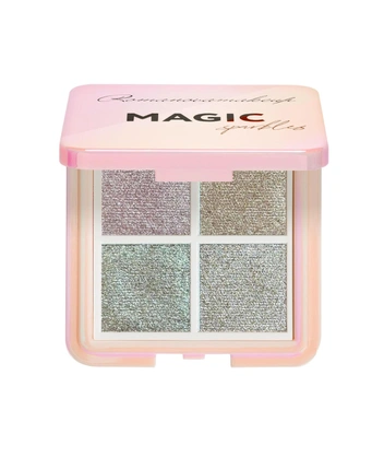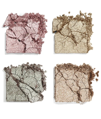 Очень красивая мерцающая палетка пудрово-гелевых теней 4 Color Eyeshadow Palette, вышла у Romanovamakeup. Четыре оттенка, золотисто-бежевый, нежно-розовый, платиновый и зеленоватый хамелеон, можно использовать самостоятельно или наносить поверх других теней. Например, при создании дымчатых smoky eyes. Также Ольга Романова рекомендует применять новинку для прорисовки модных металлик-стрелок. В этом случае, в начале по веку проводится линия черным или коричневым карандашом, а поверх нее, кисточкой распределяются «спарклы».