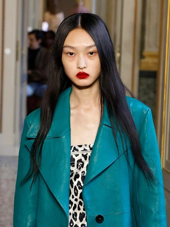 Яркая красная помада — еще один горячий тренд осени и зимы 2024/2025. В моде как классические насыщенные оттенки, так и более приглушенные варианты. Кстати, о контуре больше можно не переживать — быть идеально ровным он больше не обязан. Однако, если вам по душе более аккуратный макияж губ, не забывайте перед нанесением помады очертить контур стойким карандашом на гелевой основе.
