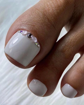 Стразы, жемчуг, бусины мы любим в маникюре, но для ногтей на ногах такие объемные украшения точно не подойдут. Такой дизайн выглядит безвкусно, однако самый главный его минус — травматичность. В закрытой обуви такие украшения будут давить на ноготь, что приведет к травме ногтевой пластины. Если вы хотите сделать педикюр акцентным, лучше присмотритесь к ярким лакам.