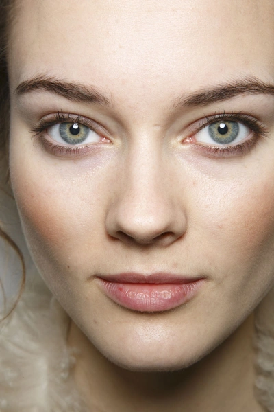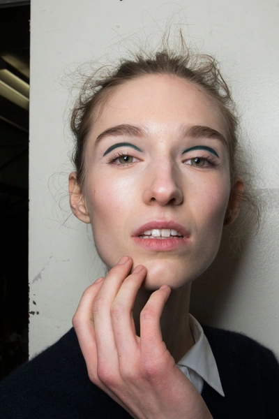 Визажист Вестман (Westman) вдохновился индийской королевской четой, сделав чистое лицо и нанеся жирные дугообразные полосы на веках при помощи жидкого лайнера. У моделей со светлыми волосами зеленый цвет, а у девушек с темными локонами синий. На щеках он смешал две помады ягодных оттенков, а для губ использовал помаду Revlon ColorBurst Lip Butter цвета инжира. Вестман считает, что такой макияж – наиболее естественный для походов по улице.