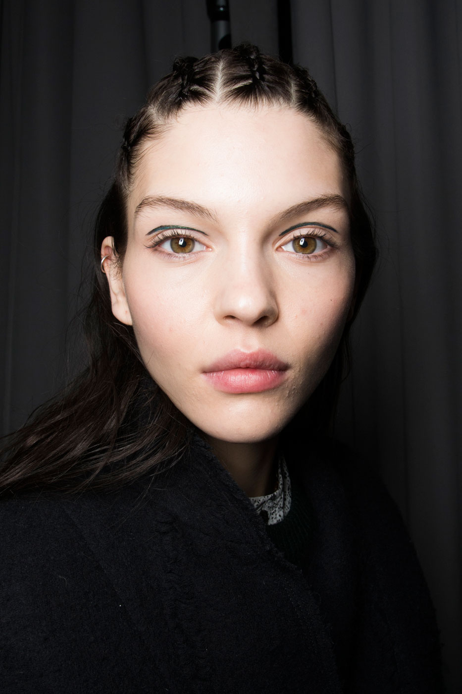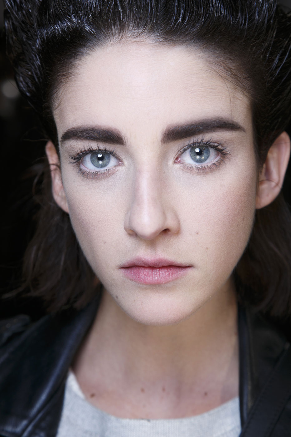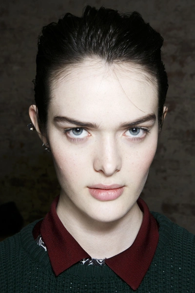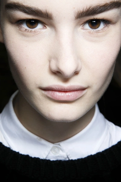 «Мое вдохновение – "Новая Волна"», – говорит визажист Франсель Дали (Francelle Daly). «Это маленькая отсылка к восьмидесятым. Немного Баньши, немного певицы Нины Хэген», – рассказывает о деталях образов специалист. Основной акцент ее мейкапа – брови. Она использовала матовые легкие тени и карандаш, выбирая цвет, подходящий под оттенок волос. Визажист сделала квадратную форму бровей, которая сужается ближе к виску. Оттенок кожи остался натуральным, а для устранения несовершенств она использовала Radiant Creamy Concealer. Ресницы моделей сильно закрутили, а щеки нарумянили при помощи марок Nico и Zen в зависимости от оттенка кожи. Ногти покрыли лаком Crossroads темного фиолетового оттенка.