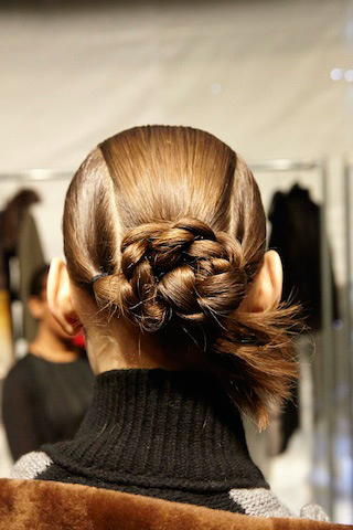 Специалист по волосам Амит Абрахам (Amit Abraham) отдал дань Тибету, где мужчины носили одну косу, а женщины две. Он сделал три хвостика на голове модели, сплел косички, которые соединил около затылочной кости и скрутил их в пучок.