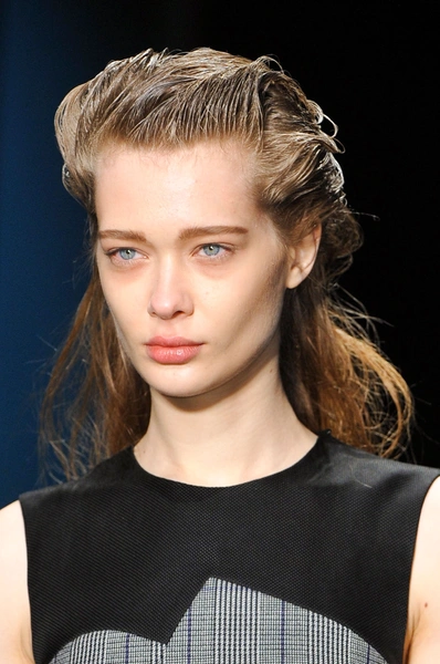 Стилист Одиль Жильберт (Odile Gilbert ) сказала, что волосам придала андрогинный стиль. «Это что-то новое для Jason Wu на Неделе моды. Мы никогда не делали для его показов начес. В этой прическе около пятидесяти шпилек. Идея в том, что вы не знаете, где она начинается и где заканчивается», – говорит парикмахер. При помощи лака она сохоранила жесткость волос по бокам, а сзади сформировала их в плотную массу при помощи лака, оставив свободными сверху.