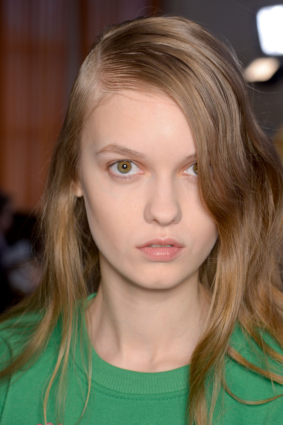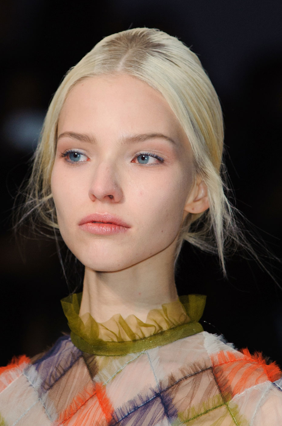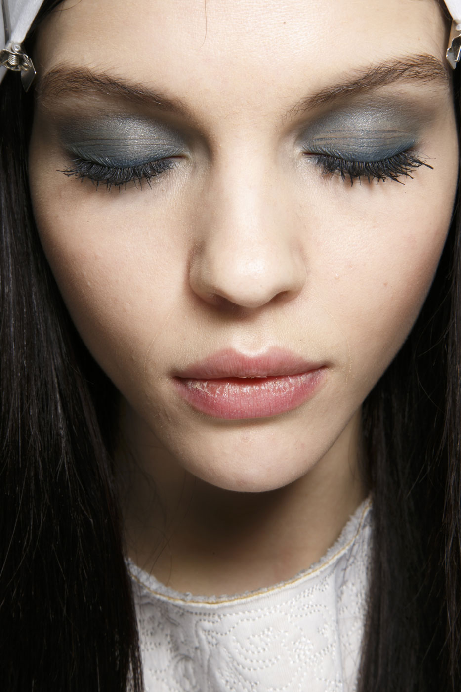 Визажист Пэт Макграт рассказала, что почерпнула вдохновение из природы – от мотыльков и сов. Она добавила моделям золотые и серебристые акценты вокруг глаз и назвала образы футуристичными, невинными и романтичными. Она также нанесла тон на кожу и обесцветила брови, а губы накрасила под цвет теней.