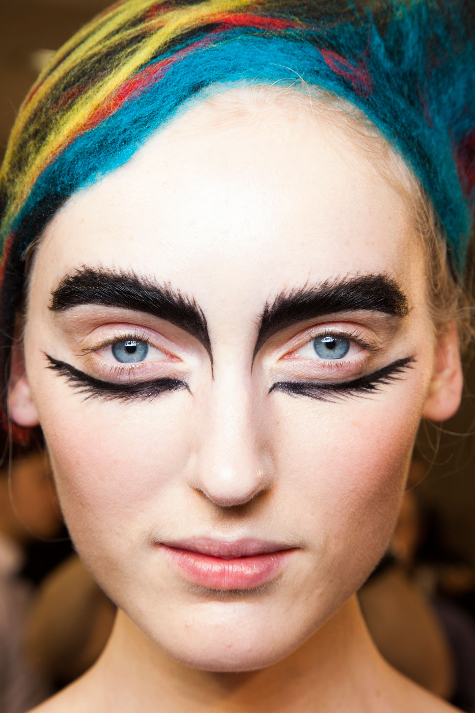 «В некотором смысле они как обладающие силой куклы», – сказала о моделях визажист Пэт Макграт. Она нанесла на лица девушек рисунок вроде перьев поверх бровей и под глазами. Для этого Пэт Макграт использовала всего лишь карандаш для глаз и немного лайнера.