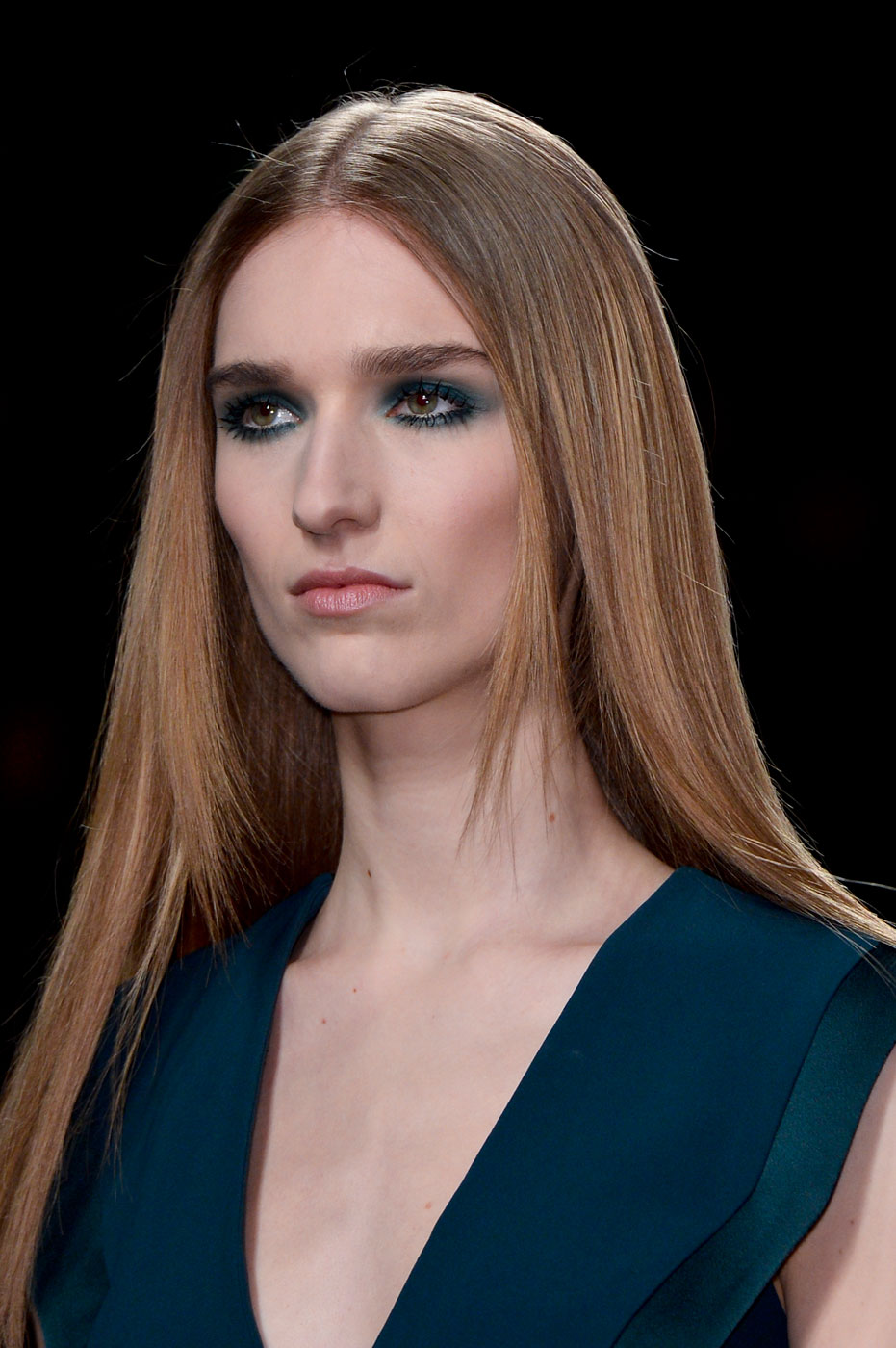 Для макияжа моделей на шоу Elie Saab визажисты выбрали основные цвета самой коллекции – бургунди и зелено-голубые оттенки.