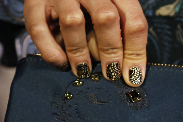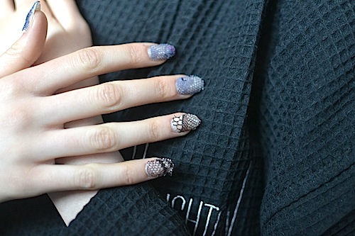 Дизайнеры датского бренда Libertine добавили цвета при помощи страз и бусин. Вдохновением для Уитни Позгай (Whitney Pozgay) послужили индийские мотивы в золотом исполнении орнамента пейсли на черных ногтях манекенщиц. Бренд Houghton вместе с маркой OPI поставили эксперимент, украсив кружевом серое панно ногтей. Бунтарка Бетси Джонсон (Betsey Johnson) выписала на ногтях лозунг в буквах, тогда как ее коллега Шарлотта Ронсон (Charlotte Ronson) вернулась к двухцветной геометрии.