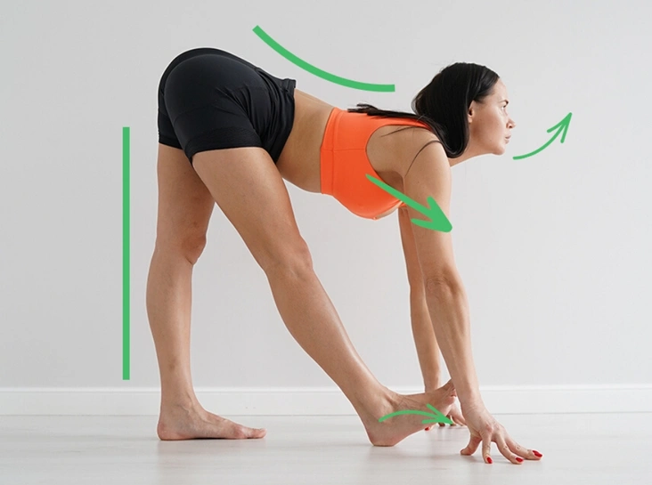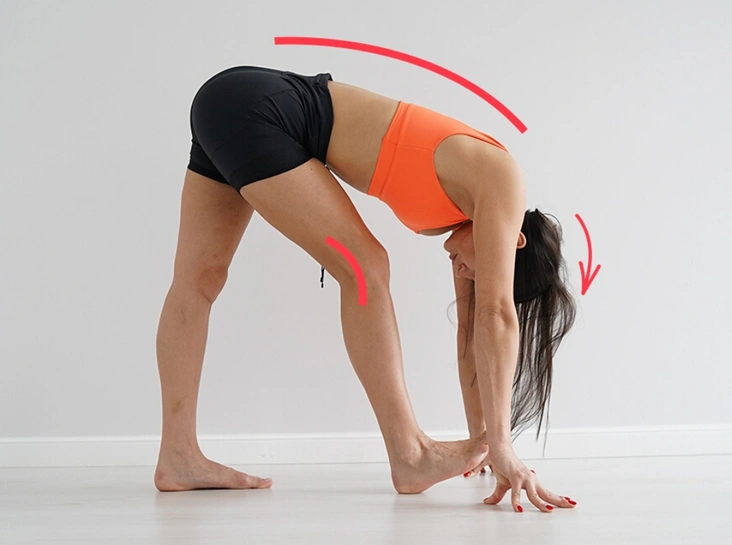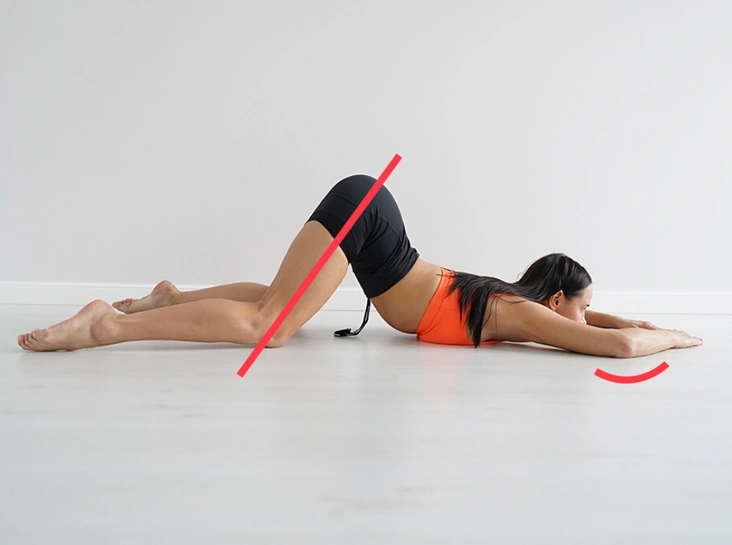 Нельзя уводить руки далеко от таза — это уменьшает амплитуду и мешает растяжке.