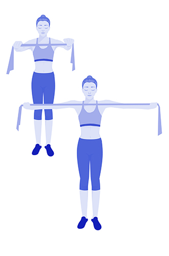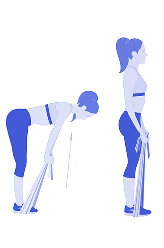 Чтобы развивать выносливость и прочерчивать мышцы, включите в свое расписание хотя бы 2-3 силовые тренировки на все тело. Если программа построена верно, то «веса» не будут вас утяжелять или увеличивать в объемах. Напротив: сильнее мышцы — больше калорий сжигаете. Однако не стоит работать исключительно с очевидными группами мышц — например, очень важно тренировать спину, чтобы избежать проблем со здоровьем в будущем. Выполняйте следующие упражнения с эспандером, чтобы проработать задние мышцы, улучшить осанку и устранить боли (каждое упражнение повторяем по 12-15 раз).