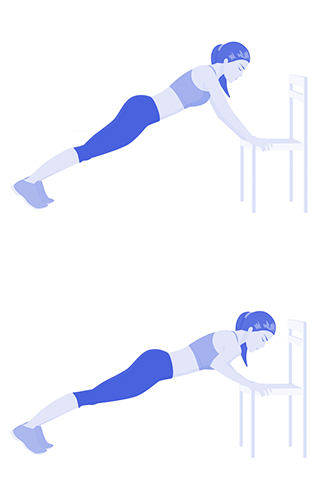 Свежий воздух и красивые пейзажи только усилят чувство радости от тренировок, а заодно поспособствуют красоте и здоровью кожи. Узнайте, быть может, в вашем местном парке есть спортивная площадка. Или же просто оглянитесь вокруг: наверняка в близлежащем сквере уже есть протоптанная дорожка для спортивной ходьбы. Подойдет даже самая обыкновенная лавочка во дворе — для отжиманий. Итак, а пока прорабатываем грудные мышцы.